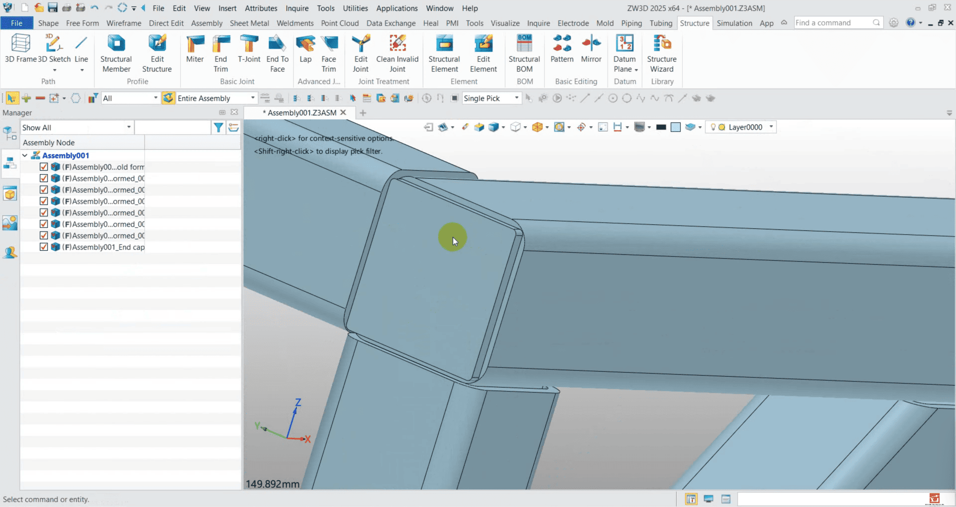 ฟังก์ชันสำหรับจัดการการเข้ามุมแบบอัตโนมัติที่ช่วยในการเชื่อมต่อระหว่างชิ้นส่วนโครงสร้างที่ตัดกันได้อย่างแม่นยำ และเมื่อมีการเชื่อมต่อกันแบบตัว T ฟังก์ชันนี้จะช่วยในการจัดตำแหน่งชิ้นส่วนและปรับแต่งให้การเข้ามุมของโครงสร้างเรียบร้อย
